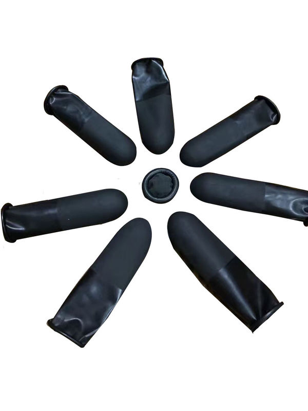 Black finger cots we have 2 types, their processes are diferent. One is above mentioned “static dissipative black”, another is ” anistatic black”, they have different performances on ESD value, but looks similar on apperances.