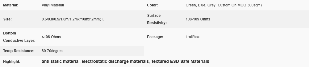 Static Dissipative ESD Safe Materials Vinyl ESD Floor Mat Smooth Or Textured Surface