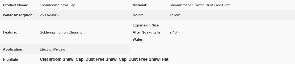 Sub Microfiber Knitted Cleanroom Shawl Cap Dust Free