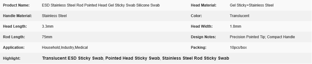 Translucent ESD Stainless Steel Rod Pointed Head Gel Sticky Swab Silicone