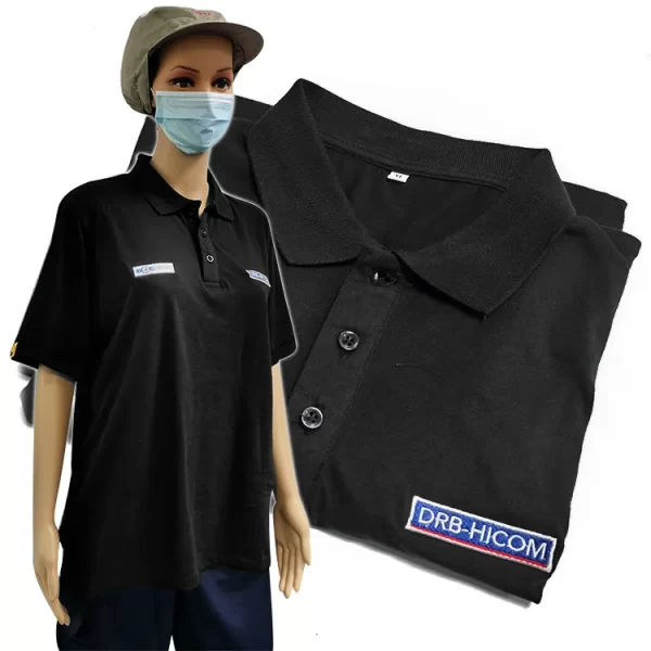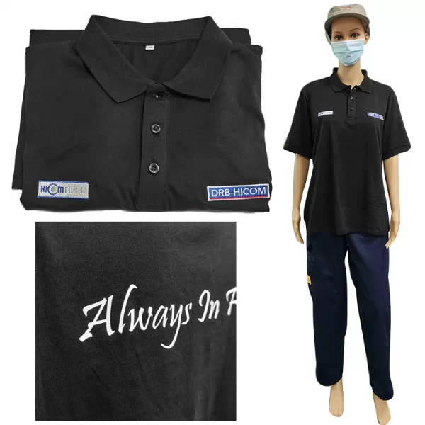 1: Adopts ESD knitted fabric with high quality Polo T-Shirt (96% Cotton+4%Carbon fiber) Long Pants (67% polyester+31% Cotton+2%Carbon fiber_. devices, have permanent excellent ESDperformance.