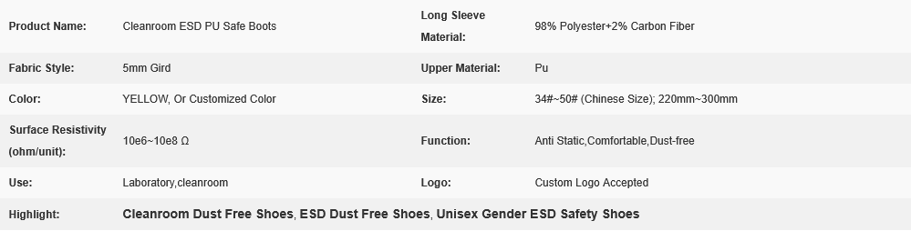 By utilizing ESD Clean Room PU Boots, individuals can maintain ESD protection, minimize contamination risks, and promote a clean and controlled environment in sensitive cleanroom settings.