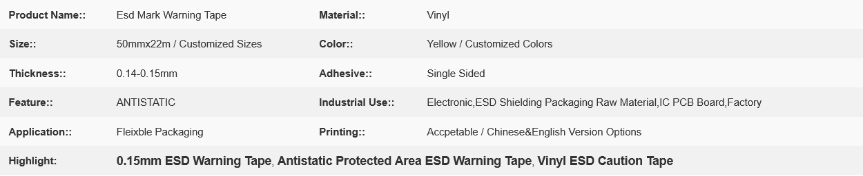 Vinyl 0.15mm ESD Warning Tape For Antistatic Protected Area