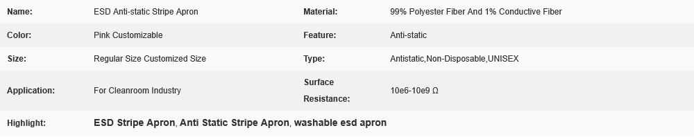 Washable Pink Color Customized Anti-static ESD Stripe Apron for Cleanroom