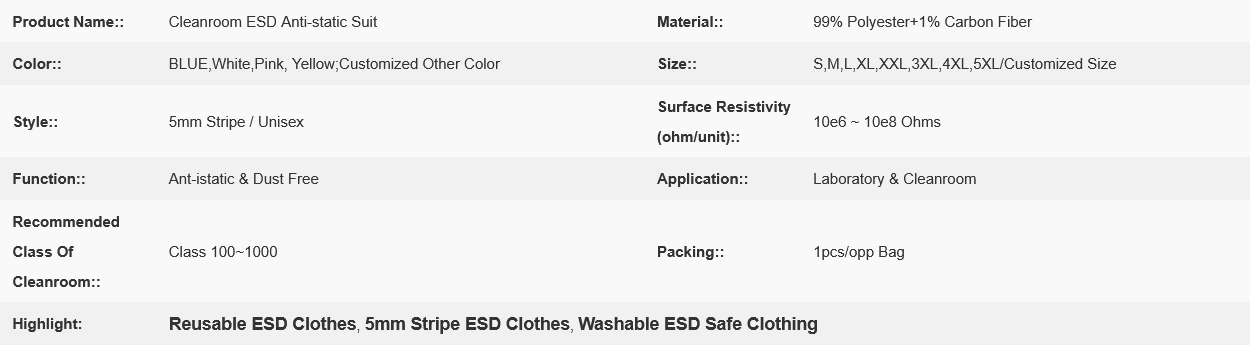 Washable Reusable 5mm Stripe ESD Clothes For Cleanroom