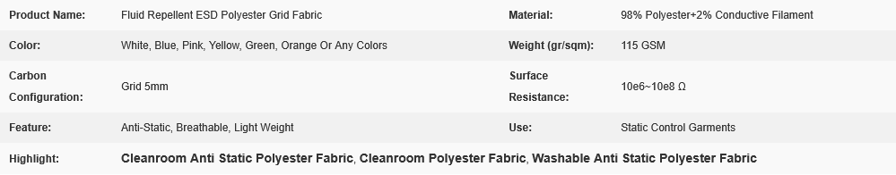 | Fluid Repellent ESD Polyester Grid Fabric | |