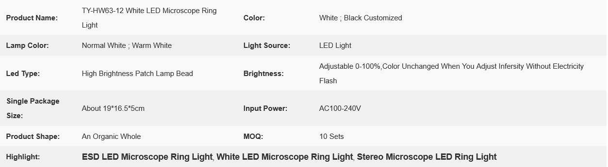 | TY-HW63-12 White LED Microscope Ring Light | |